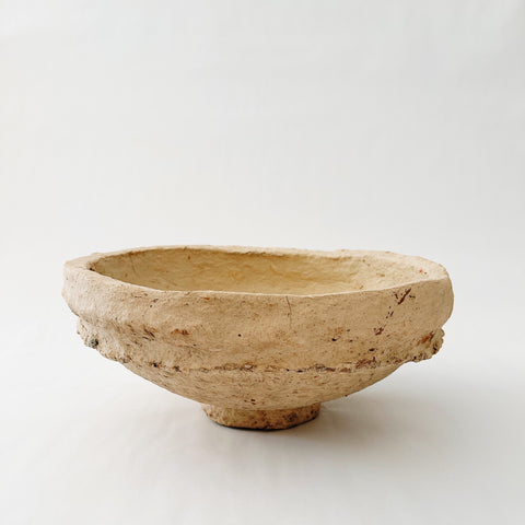 Design: Hand-formed paper machè bowl inspired by vintage artifacts