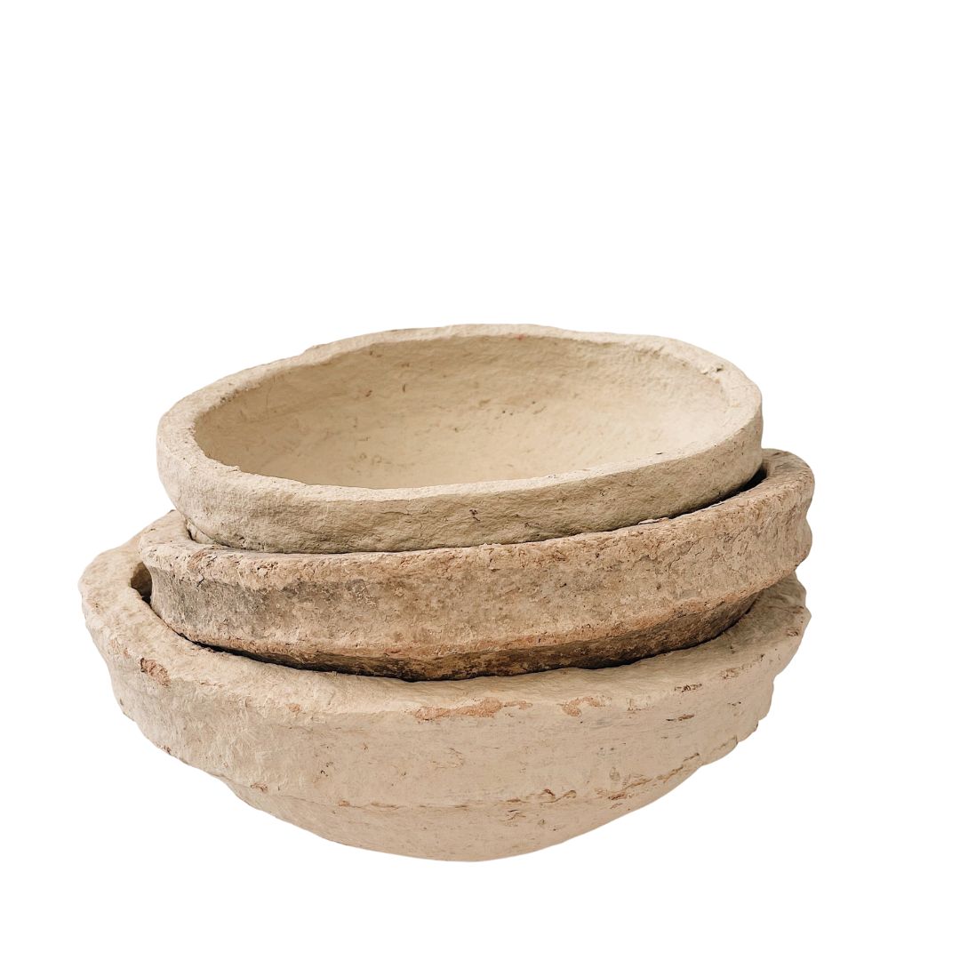 Organic, timeworn, and beautifully imperfect, the Primitive Paper Machè Bowl brings the quiet poetry of vintage artifacts into your home. Handcrafted from recycled paper clay, each bowl is shaped by hand, resulting in one-of-a-kind variations in form, texture, and patina. Its softly worn surface and sculptural silhouette evoke the feeling of found objects collected over time—pieces that tell a story through their imperfections.