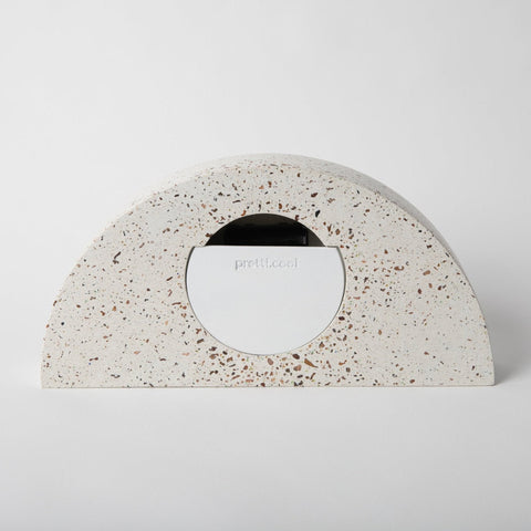 Bring timeless design to your home with the White Terrazzo Mantle Clock by Pretti.Cool — a perfect blend of minimalism and craftsmanship. Featuring a clean semicircular silhouette and natural terrazzo texture, this clock adds a touch of modern artistry to mantles, shelves, or desks.
