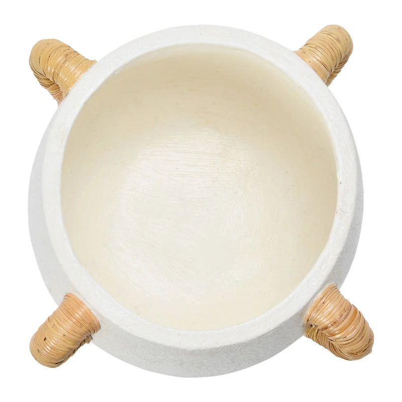 Bring natural charm and artisanal style to your greenery with the Wren Terracotta Planter with Rattan Handles. Crafted in a creamy terracotta finish, this planter features a footed base that subtly elevates your plants while adding dimension and depth to your space. Four decorative rattan-wrapped handles highlight its boho-inspired design, blending warmth and texture with timeless appeal.