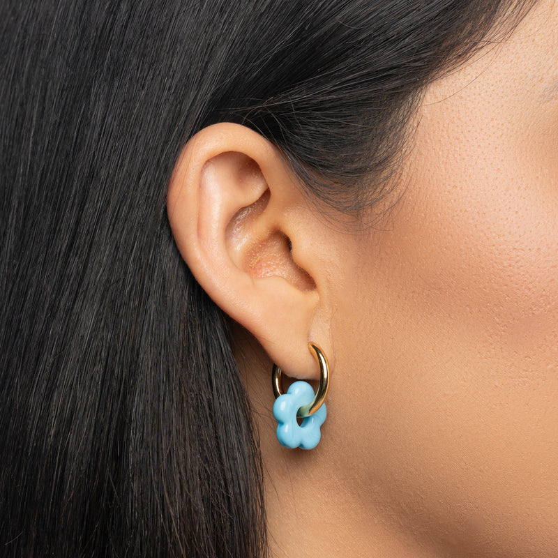 The Daisy Earrings bring a playful twist to everyday jewelry. Featuring signature huggie hoops adorned with charming daisy accents, these earrings combine comfort with style, making them a standout piece for daily wear.