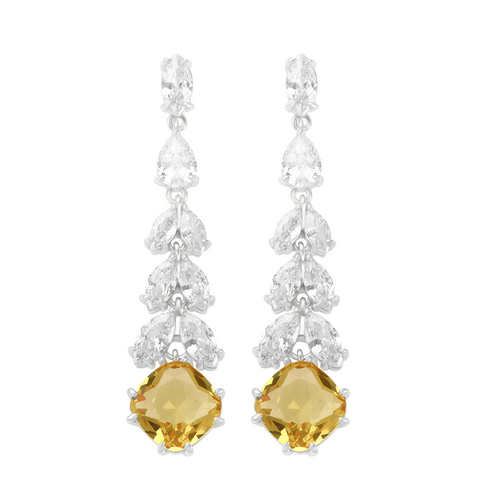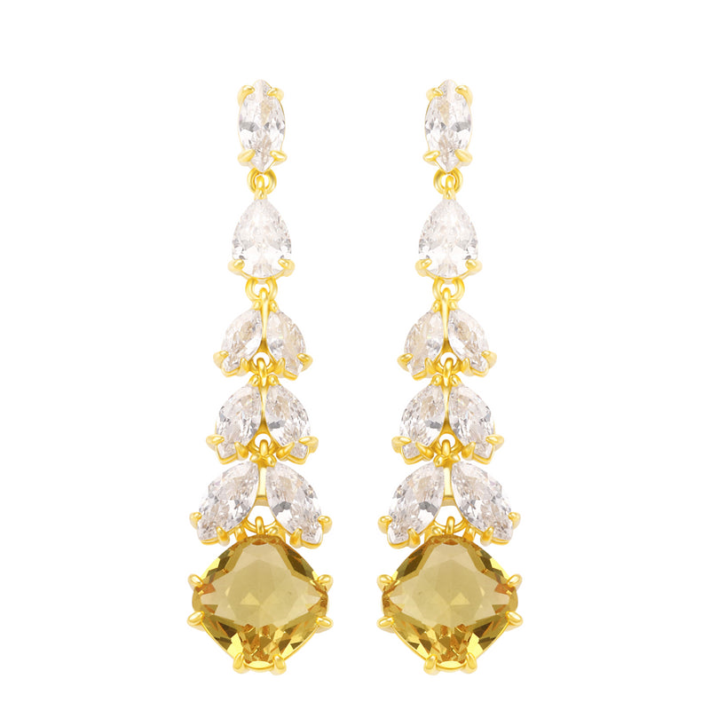 Elevate your elegance with the Soleil CZ Drop Earrings, designed with radiant yellow cubic zirconia stones arranged in a delicate, flower-inspired silhouette. These refined earrings capture the perfect balance of subtle glow and bold sophistication, making them a versatile choice for both daytime chic and evening glamour.