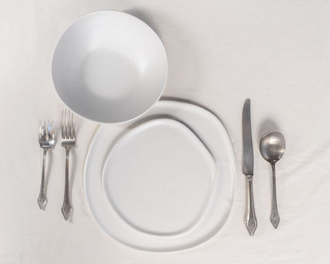 The 3 Piece Ripple Dinner Setting is a minimal, versatile foundation for everyday dining. This popular set includes the most essential Ripple pieces, making it an excellent starting point as you build your Haand collection. Its organic shapes and thoughtful design work for casual meals, formal dinners, or as a base to layer with serving pieces and glassware.