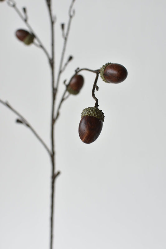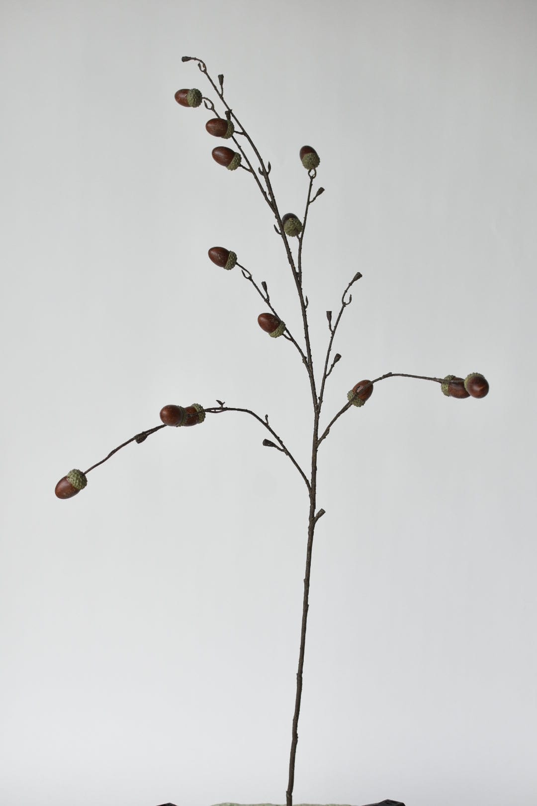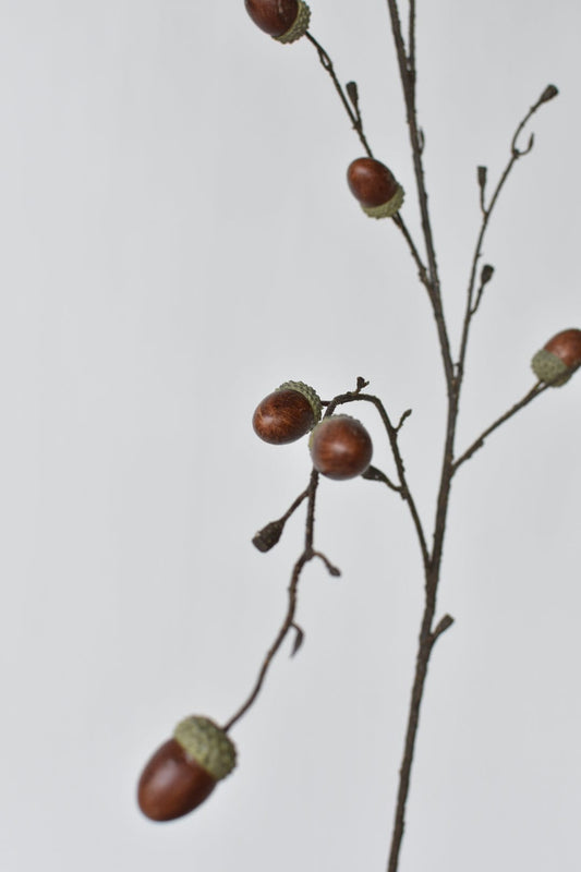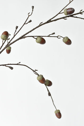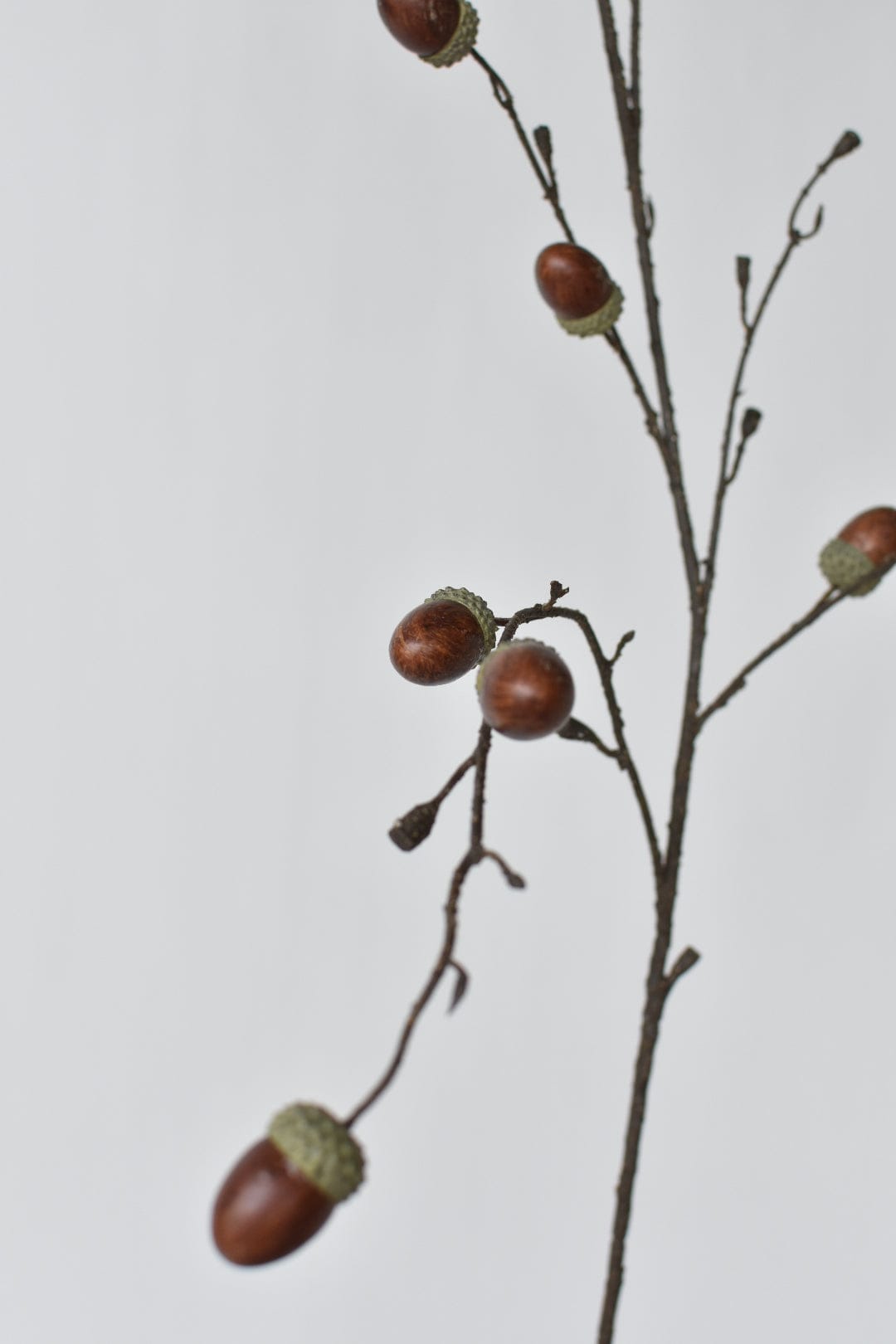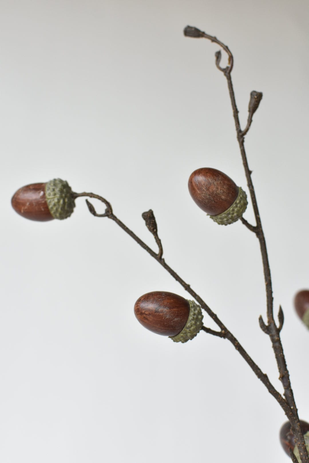 Bring seasonal charm into your home with the 40" Artificial Acorns on Branch. This airy, twiggy stem is perfect for adding height and texture to your fall displays. The dimensional, hand-finished acorns feature a subtle wood grain look that feels beautifully natural.
