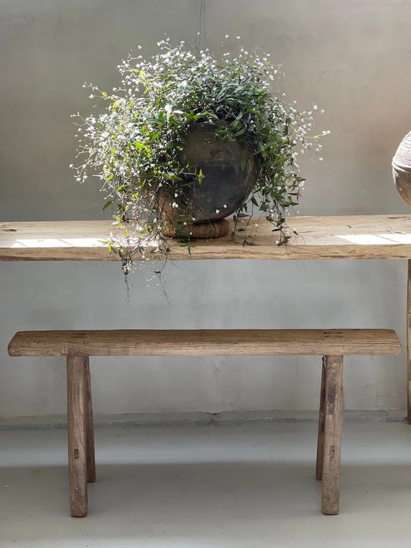 Bring timeless charm and history into your home with our Skinny Elm Wood Bench. Originally crafted in China over 100 years ago, each bench is a one-of-a-kind vintage piece with natural imperfections that highlight its unique story.