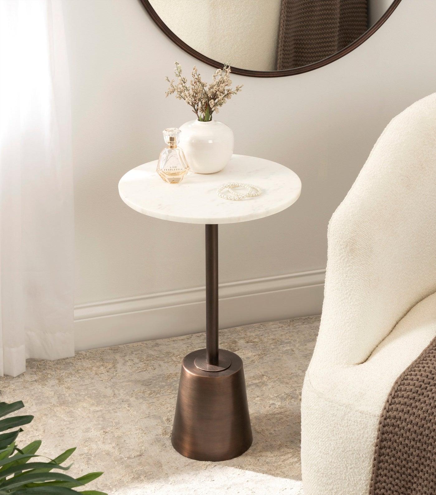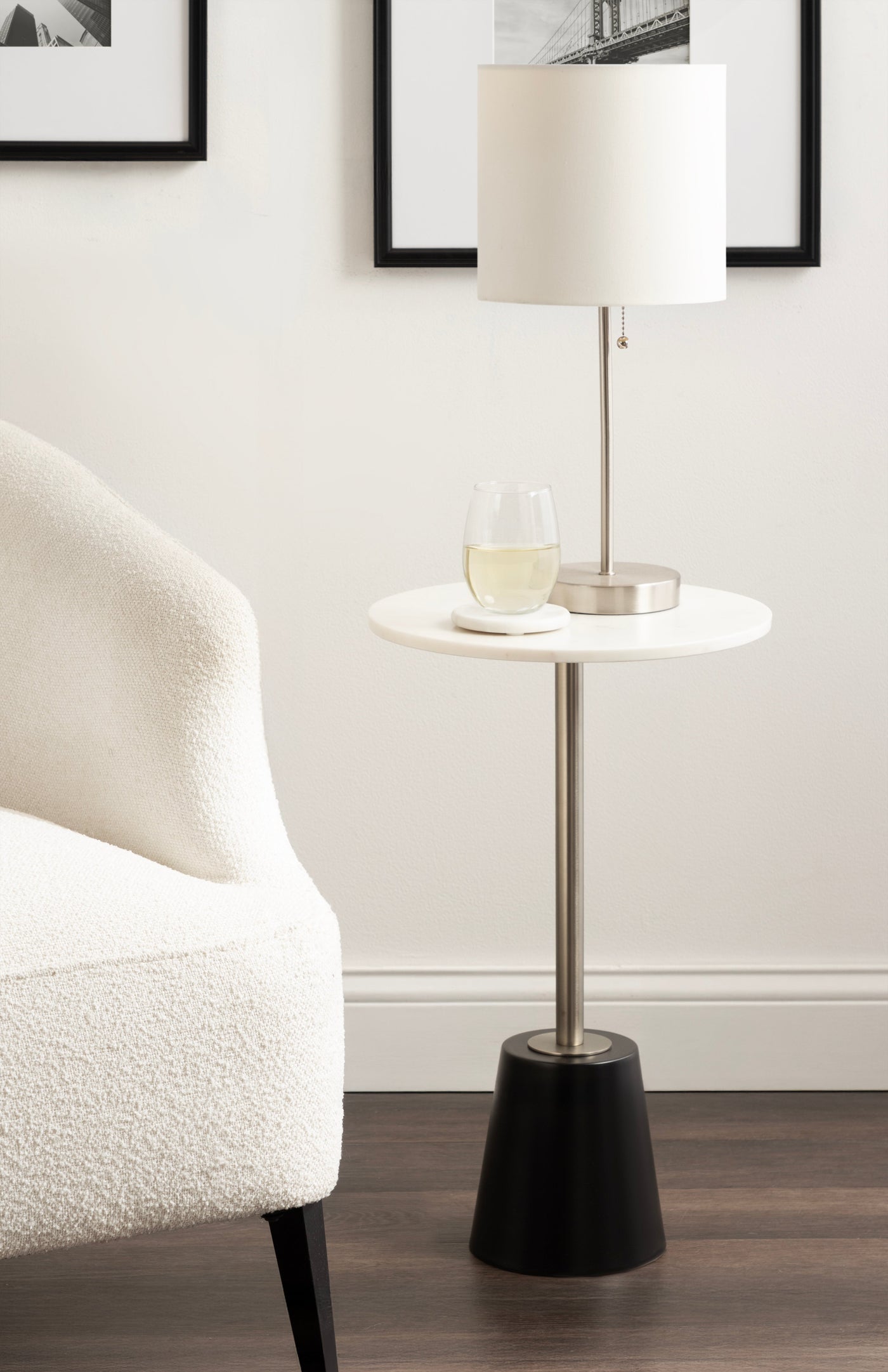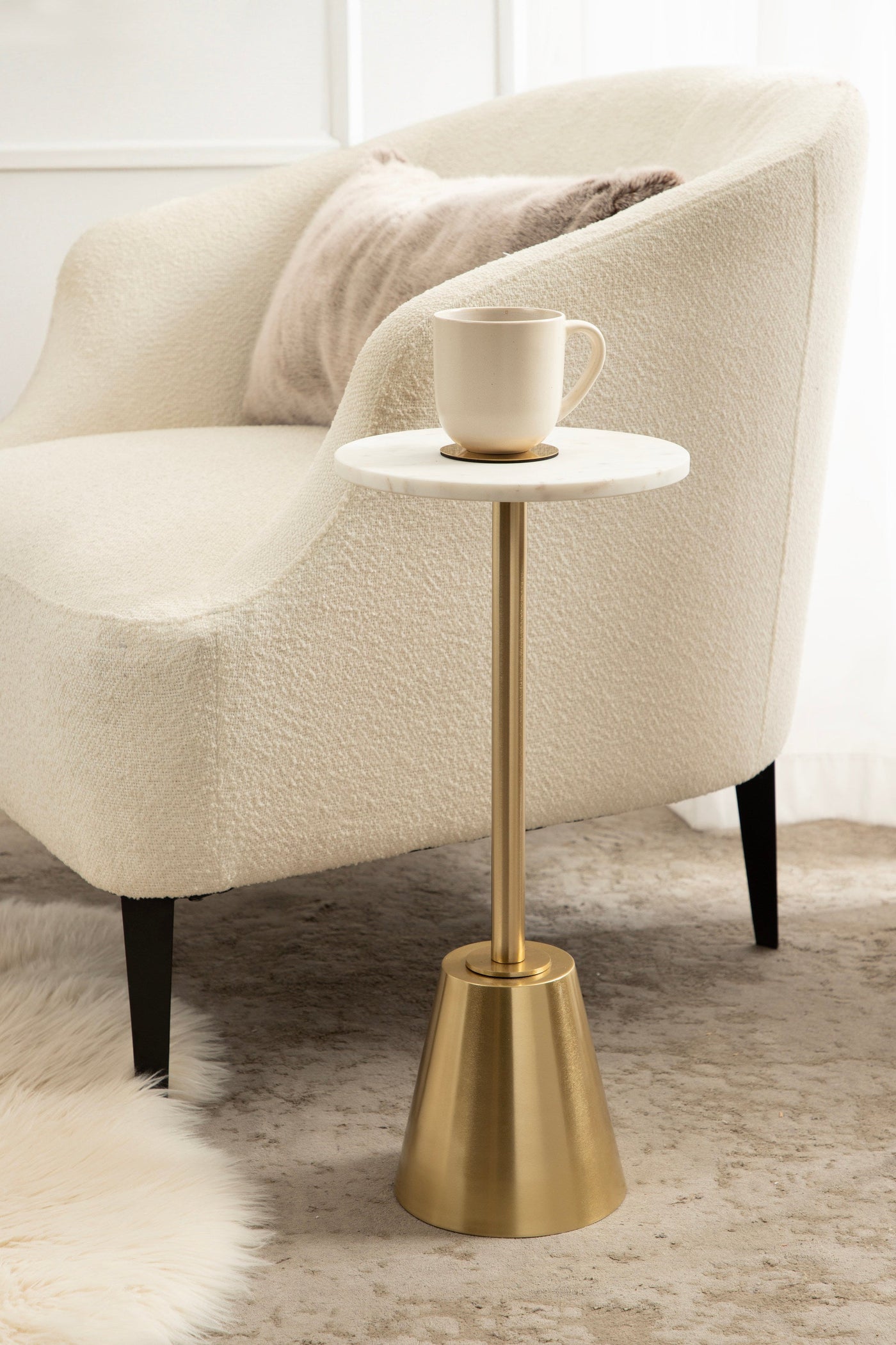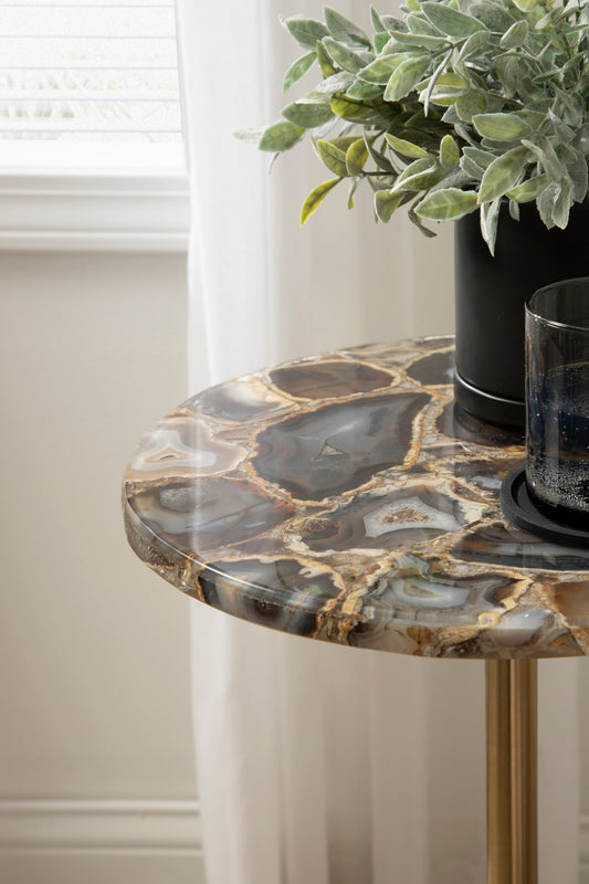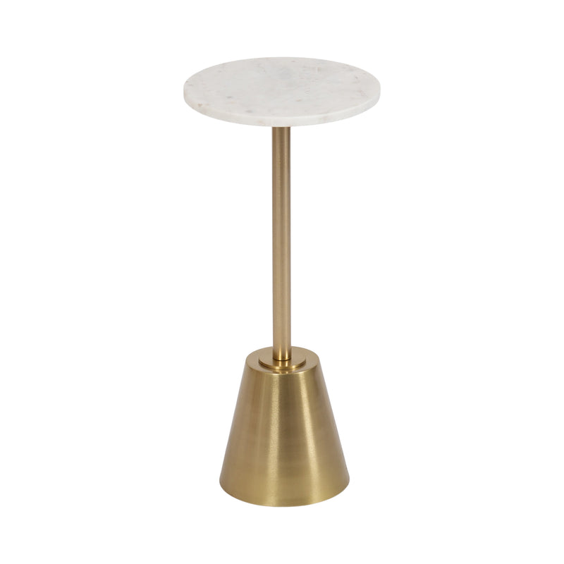The Tira Round Marble and Metal Side Table exudes modern luxury with its striking combination of marble and metal finishes. This chic drink table is designed to offer both style and functionality, making it an ideal piece for serving drinks or displaying small decorative accents. Its compact round shape ensures that it fits seamlessly into any room, whether beside your sofa, in a cozy reading nook, or next to your bed.