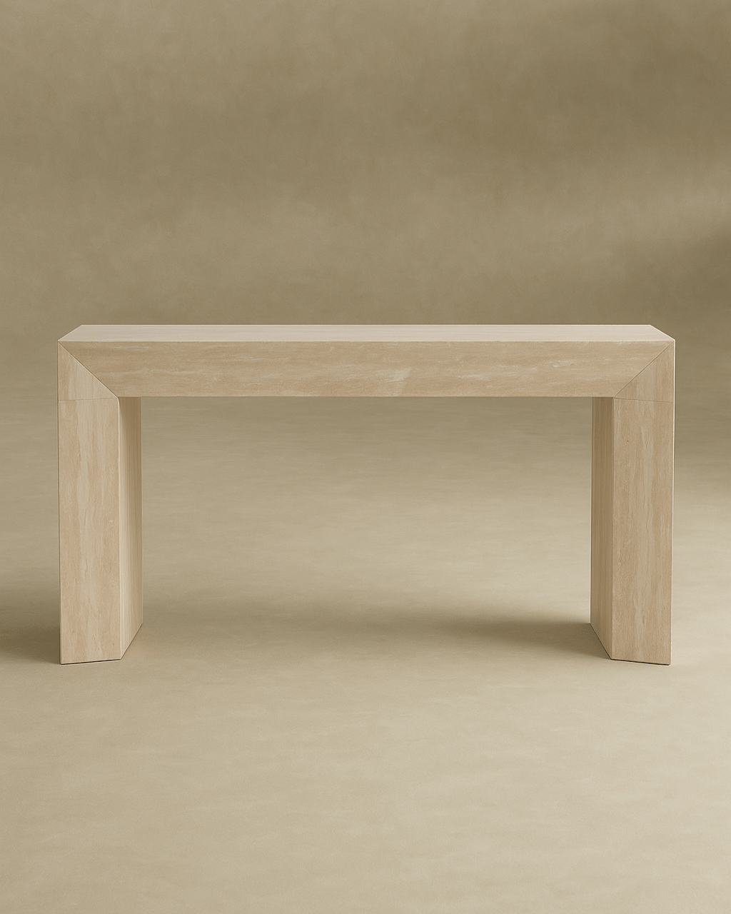 The Toscana Travertine Console Table combines natural stone craftsmanship with functional design. Made from genuine veiny travertine, this console table features organic textures and sophisticated lines that work well in entryways and living spaces. The natural travertine construction provides durability while the stone's inherent veining creates visual interest. This console table offers surface space for decor display and storage solutions for various room settings.