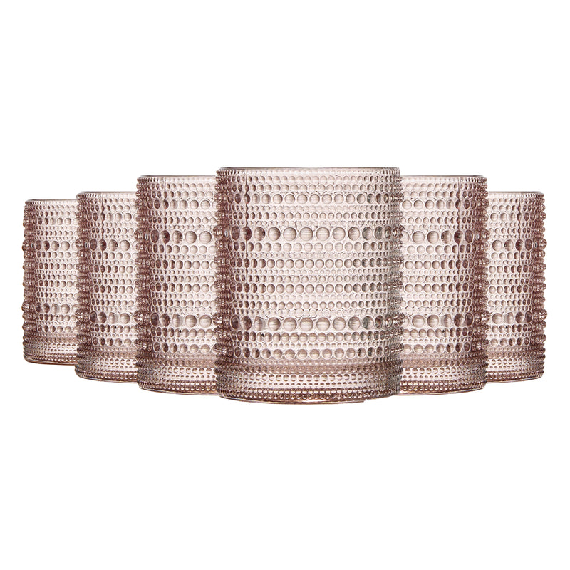 Bring texture and timeless style to your table with the Tonal Hobnail Lowball Glasses. Designed with a classic hobnail pattern, these glasses catch the light beautifully while offering a tactile grip that feels as good as it looks. Perfect for whiskey, cocktails, or everyday beverages, they add vintage-inspired charm to every pour.