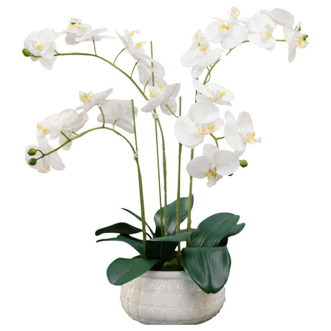 Bring timeless elegance into your home with this lifelike 23-inch Artificial Phalaenopsis Orchid. Featuring four beautifully crafted stems, each bloom captures the delicate grace of real orchids in exquisite detail. Available in crisp white, this orchid adds a refined touch to any space, whether styled in a vase, arrangement, or displayed as a standalone statement.