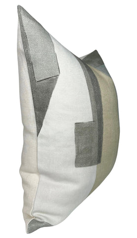On the Front: District Printed Fabric in Alabaster On the Back: Ivory Linen Fabric