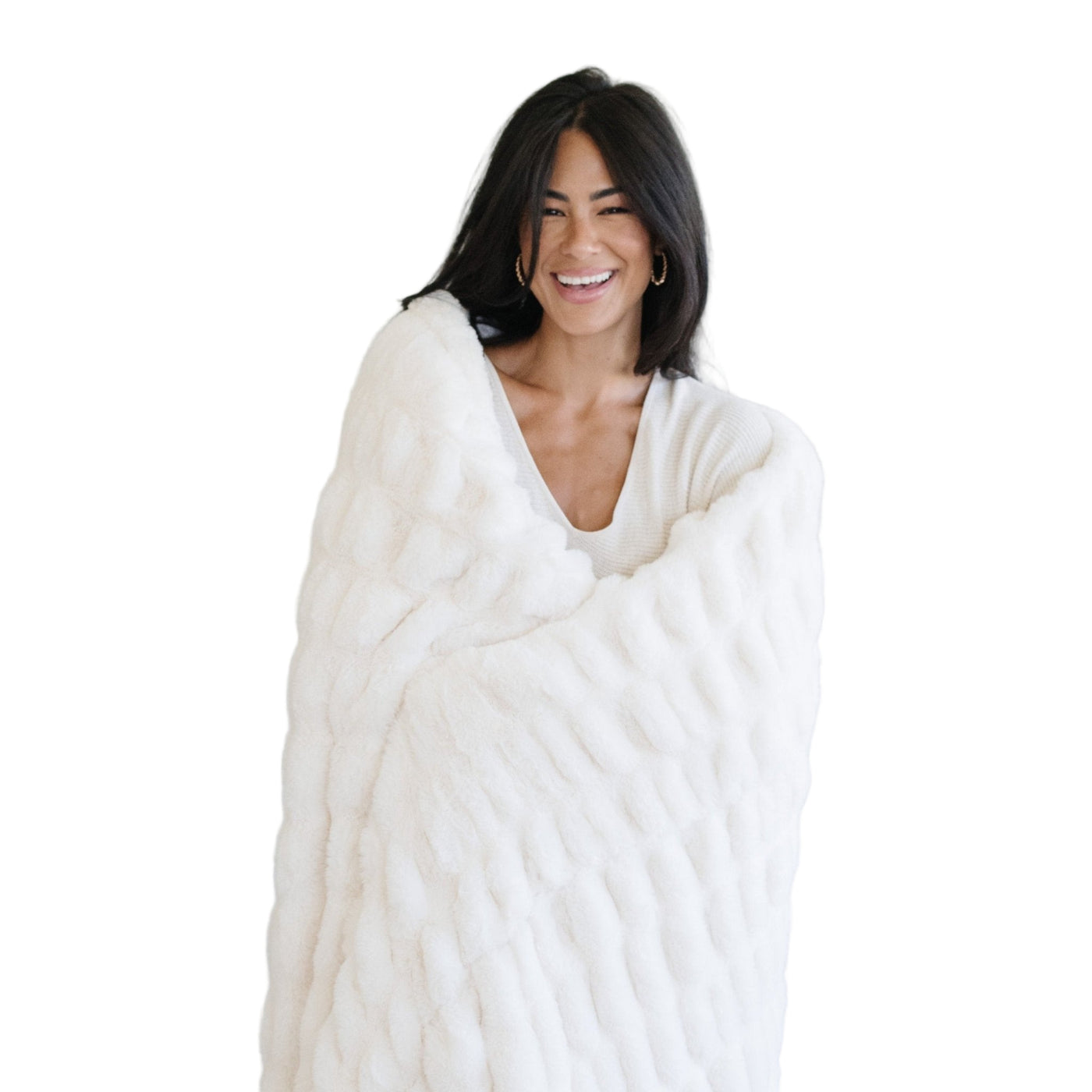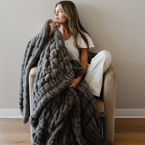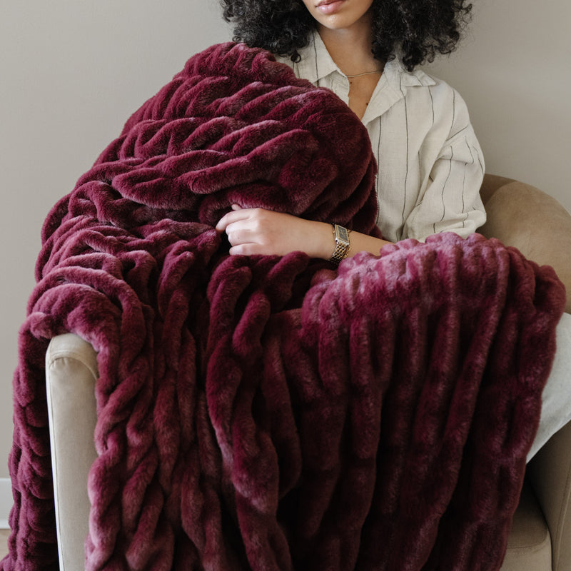 Bring home the ultimate in luxury and comfort with the Double Ruched Faux Fur Throw Blanket by Saranoni. Featuring best-selling faux fur on both sides, this blanket is designed with ruched detailing that creates a beautiful ripple effect and irresistibly soft texture. Perfectly sized at 50 x 60, it’s the ideal throw for your sofa, reading nook, or favorite chair.