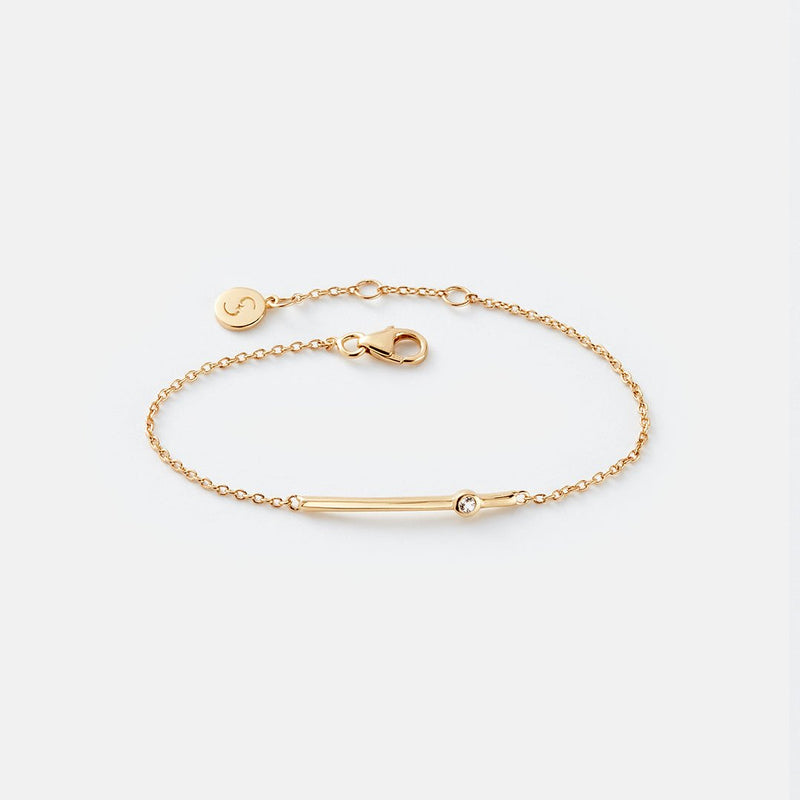Minimalism meets quiet sparkle in the Arc Bracelet—a refined, modern piece designed to rest gracefully along the wrist like a whispered hint of light. Its polished curved bar bends softly to the natural shape of your arm, striking a balance between simplicity and sculptural elegance. A single bezel-set white topaz adds just the right glimmer, catching the eye without ever overpowering.