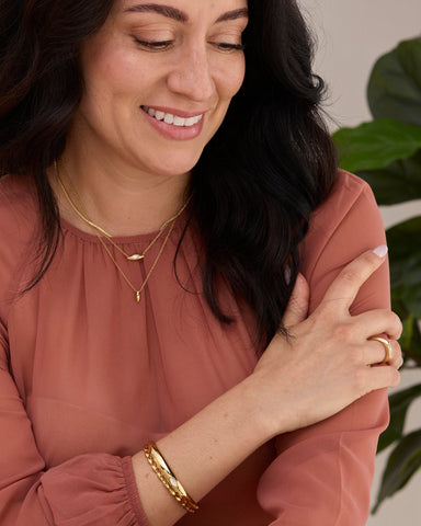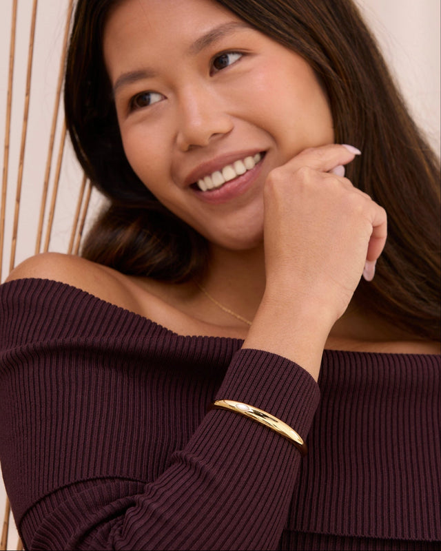 Slip it on as a singular statement or pair it with slimmer bangles for a layered, textural look. With its substantial gold finish and mindful craftsmanship, this cuff is designed to become a signature piece you’ll reach for again and again.
