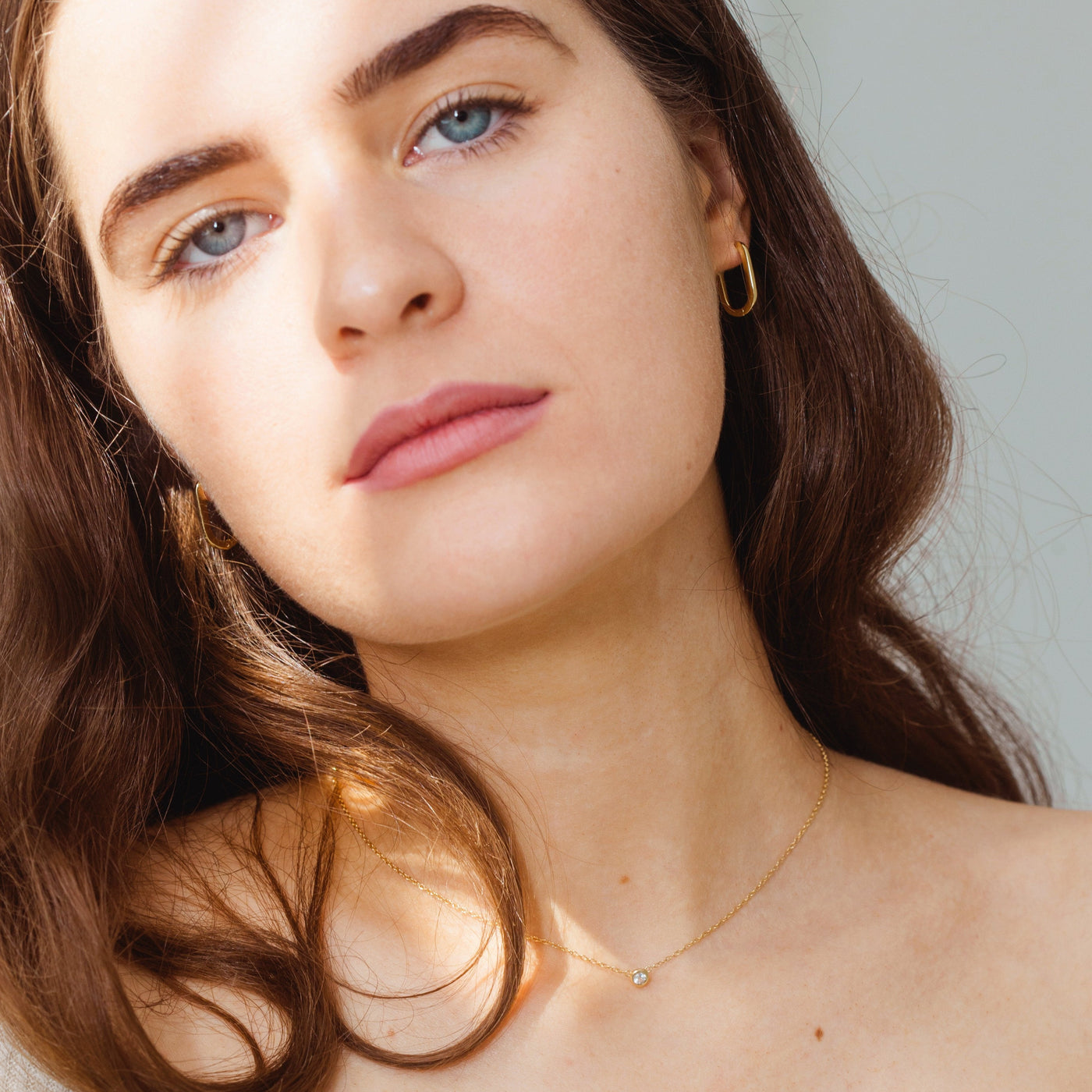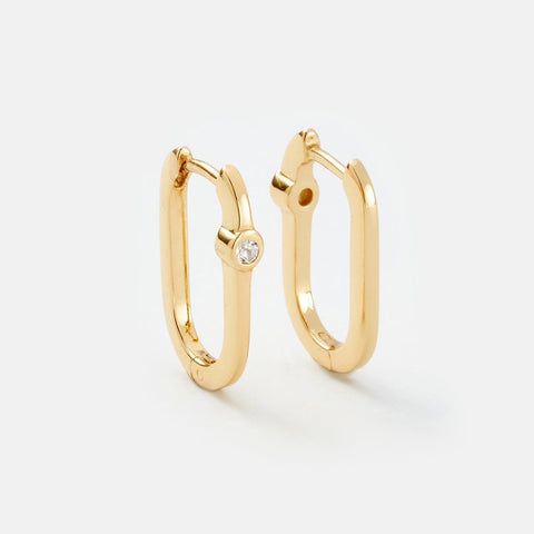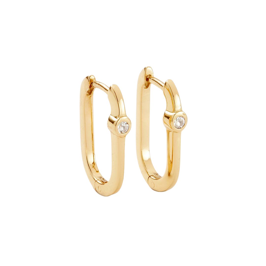 Meet the Reversible Midi Gold Hoop with White Topaz, a sleek, modern staple designed for style that adapts to every mood. Crafted in a slender, elongated silhouette, this hoop features a bezel-set white topaz gemstone that delivers a soft, luminous sparkle without overpowering your look. Flip it around, and the stone disappears into a smooth polished finish. One earring, two distinct vibes, elegant shimmer or minimalist shine.