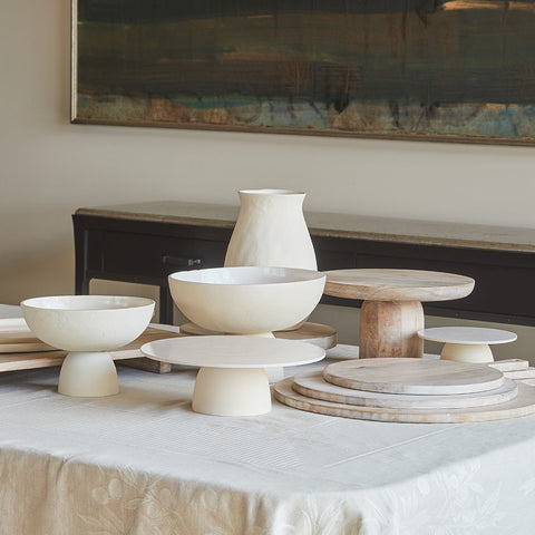 The Charlotte Serving Pedestal is designed to bring form and function to your table. With its smooth, sculptural base and wide, flat surface, this pedestal offers the perfect foundation for serving cakes, pastries, appetizers, or displaying decorative pieces. Its clean, neutral finish blends effortlessly with both casual and formal settings, making it a versatile accent for any occasion.