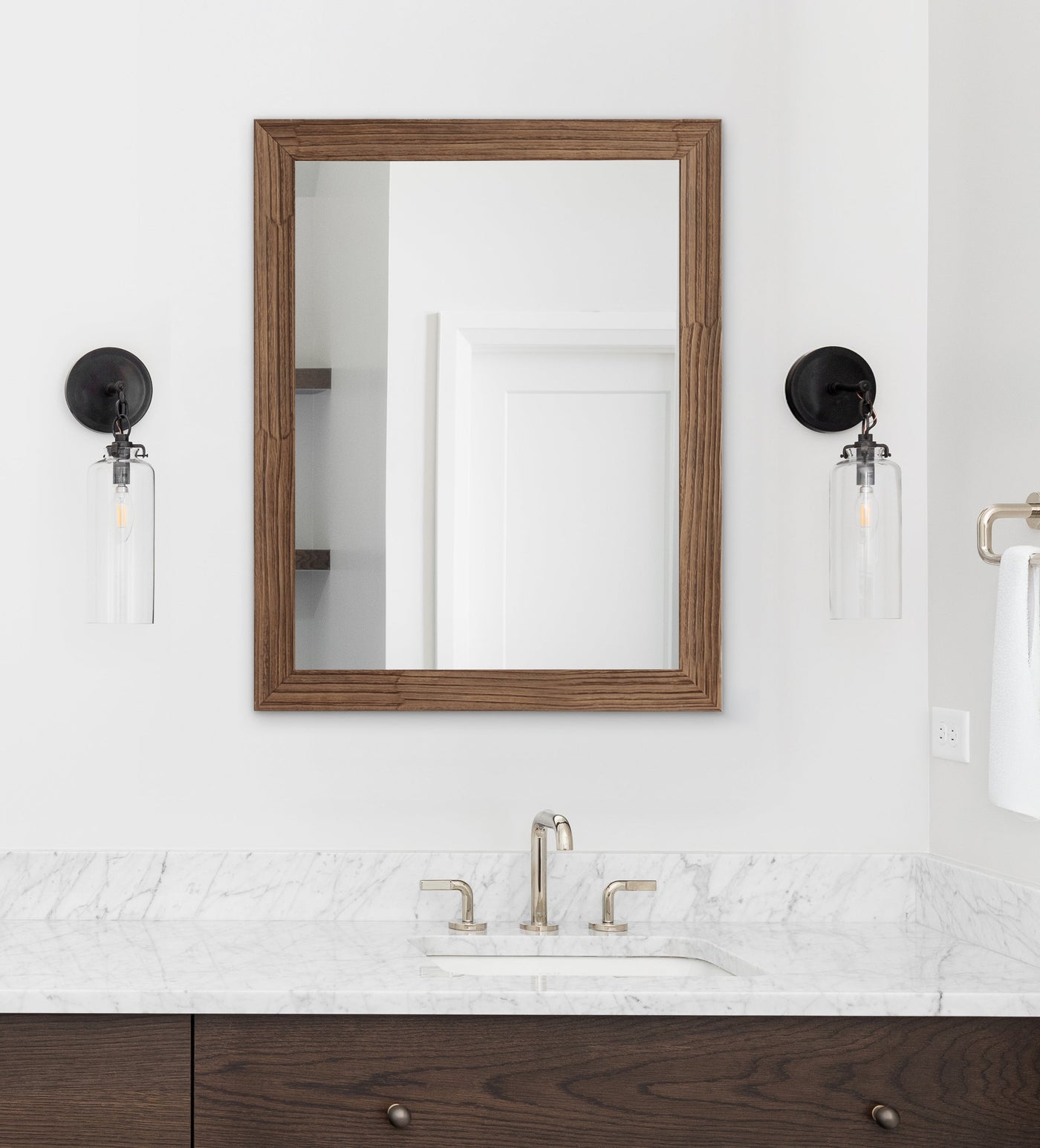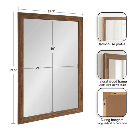 The Travon Rectangle Bathroom Wall Mirror from Kate and Laurel is an elegant and versatile addition to any space, blending both function and farmhouse style. The mirror features a natural wood frame, highlighting the beauty of the woodgrain, and brings a rustic charm to your bathroom, bedroom, hallway, or living room. It’s a perfect solution for above a bathroom vanity, but can also be used to open up smaller spaces with ease.