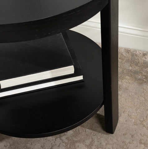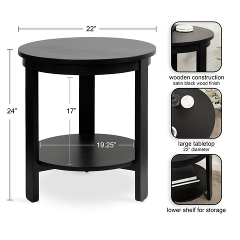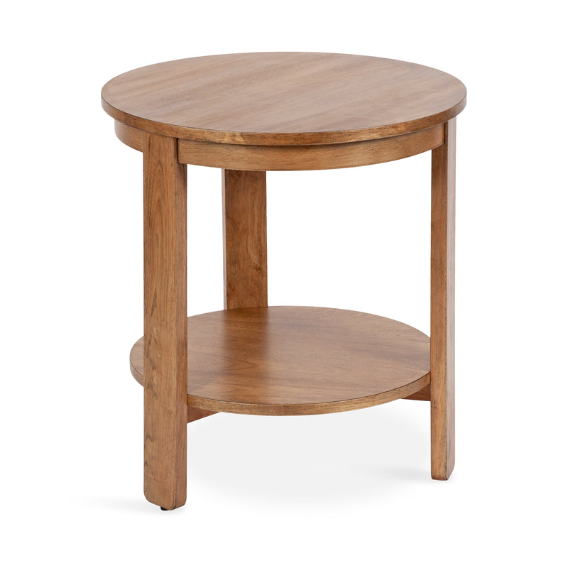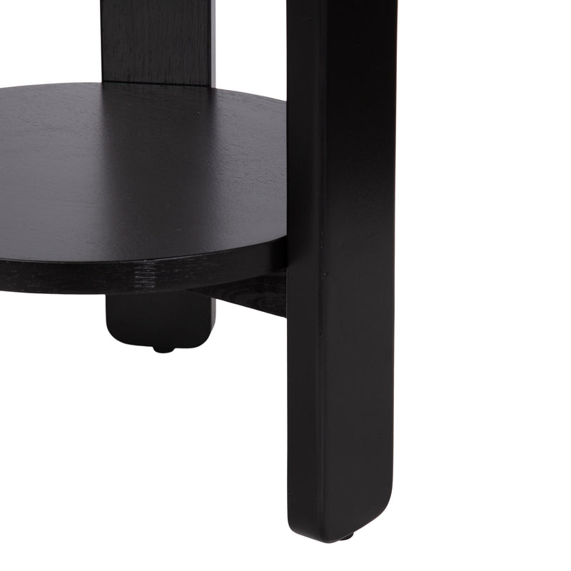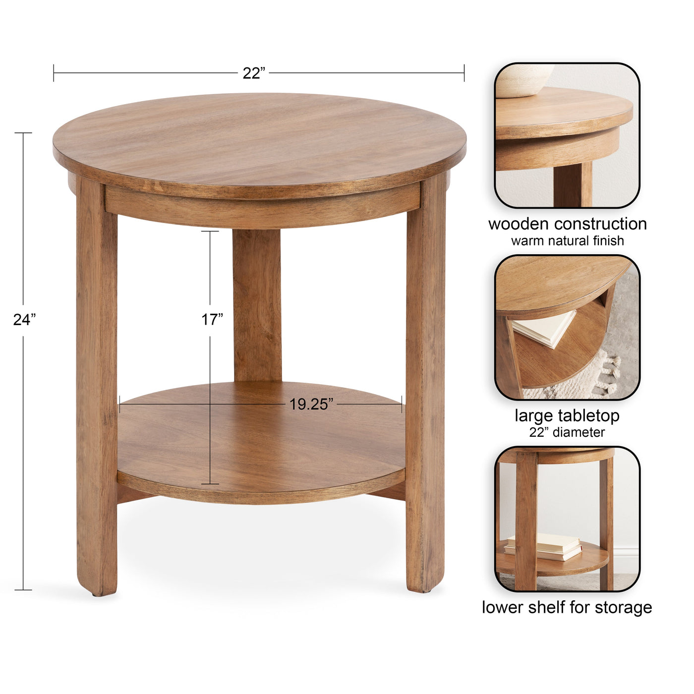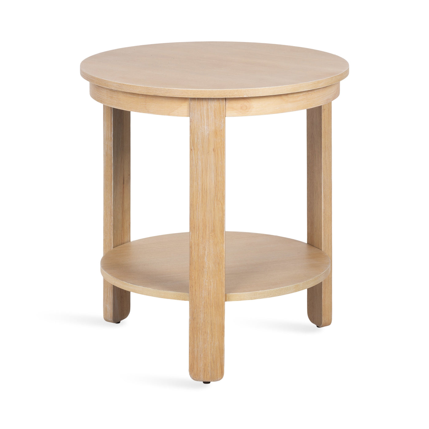 The Foxford Round Wood Side Table is a perfect blend of functionality and transitional style, designed to enhance any living space. Crafted from solid wood and resilient materials, this side table brings both beauty and durability to your home. The top tier provides an ideal display area for candles, small lamps, and other decorative accents, while the bottom tier offers ample storage for your household essentials, from cozy blankets to lush faux greenery.