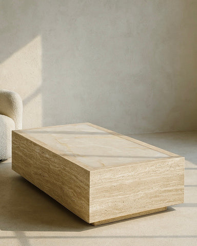 Palermo Beige Travertine Onyx Coffee Table 52" Modern Stone