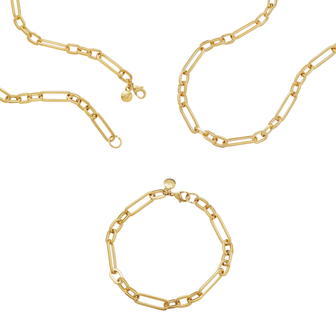 The Figaro Link Set features two timeless essentials: the Figaro Chain Link Necklace and the Figaro Chain Link Bracelet. Designed for versatility, both pieces can be styled solo, layered, or paired with charm pendants to create a look that’s uniquely your own.
