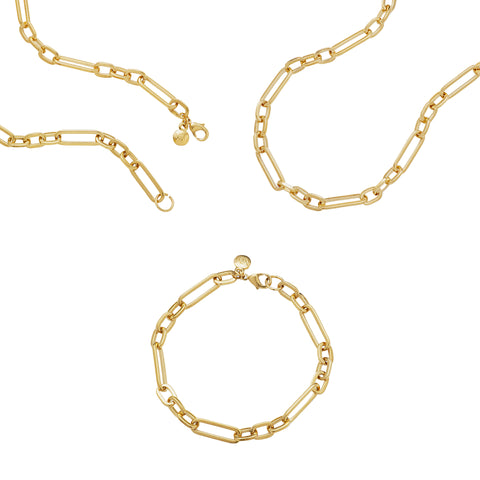 Set Includes: Figaro Chain Link Necklace + Figaro Chain Link Bracelet