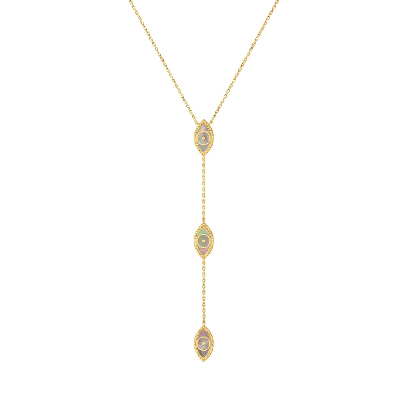 Embrace change with grace and protect your energy with the Grace & Beauty Evil Eye Mother of Pearl Necklace. Featuring a delicate Evil Eye design set with shimmering grey Mother of Pearl, this meaningful piece blends imagination, intuition, and timeless style.