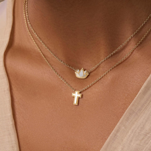 Sweet Surrender Mother of Pearl Cross Gold Necklace
