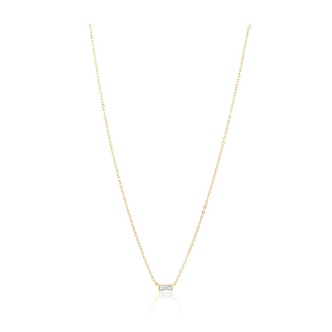 Add a touch of timeless sparkle with the Willow Necklace – Clear. Featuring a brilliant 7.5mm clear CZ stone set in elegant 14k gold-plated sterling silver, this delicate piece offers just the right amount of shine to elevate any outfit.
