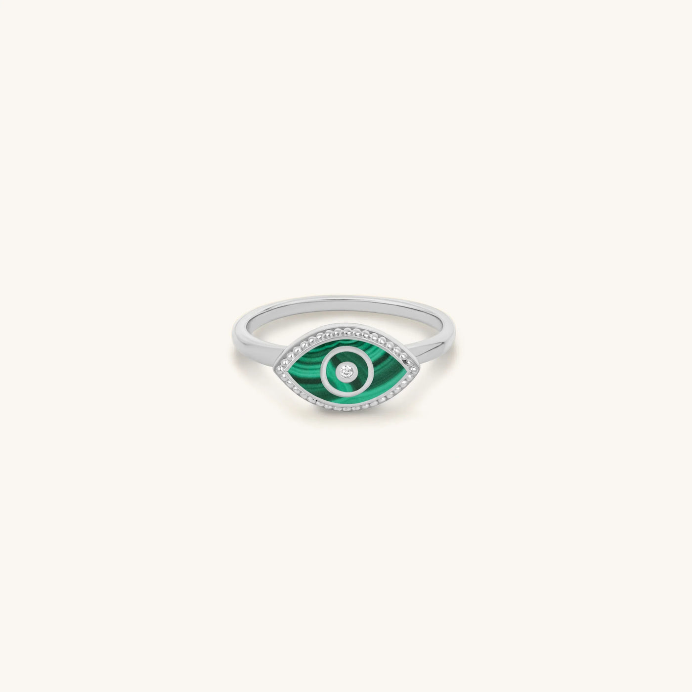 Clear Ambitions Malachite Evil Eye Ring Sale