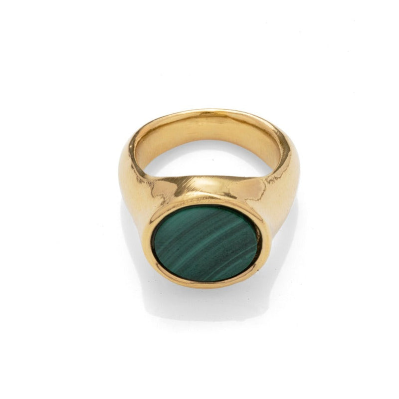 Bold yet refined, the Malachite Signet Ring is a statement piece designed to elevate your everyday style. Featuring a striking malachite stone with its signature green striations, this ring embodies natural beauty and timeless elegance. Its versatile design makes it equally stunning when worn solo or stacked with other rings for a layered look.