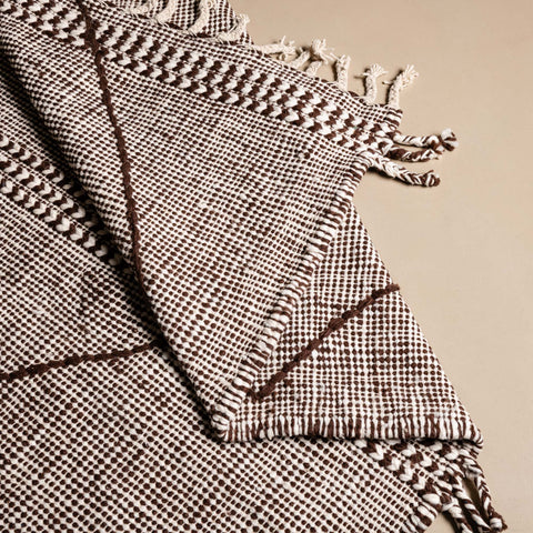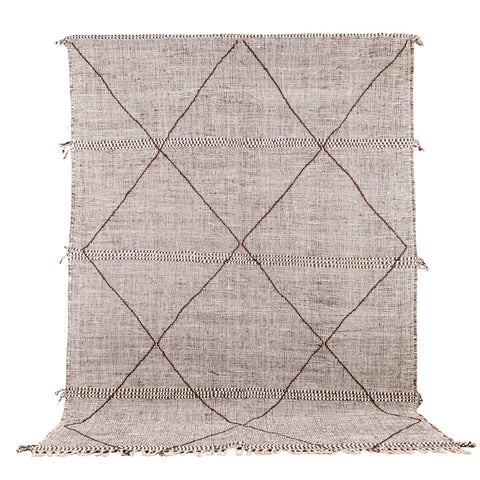 The Chefa rug is a brand new, one-of-a-kind kilim, handwoven by a master craftswoman of the Taznakht tribe in Morocco. Known for their outstanding artisanal weaving traditions, the Taznakht create pieces that are both durable and deeply expressive. Woven from 100% premium wool sourced from the Atlas Mountains, this rug embodies quality and authenticity while adding cultural richness to your home.
