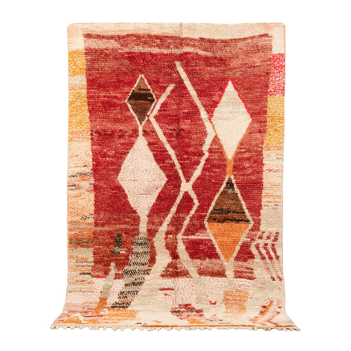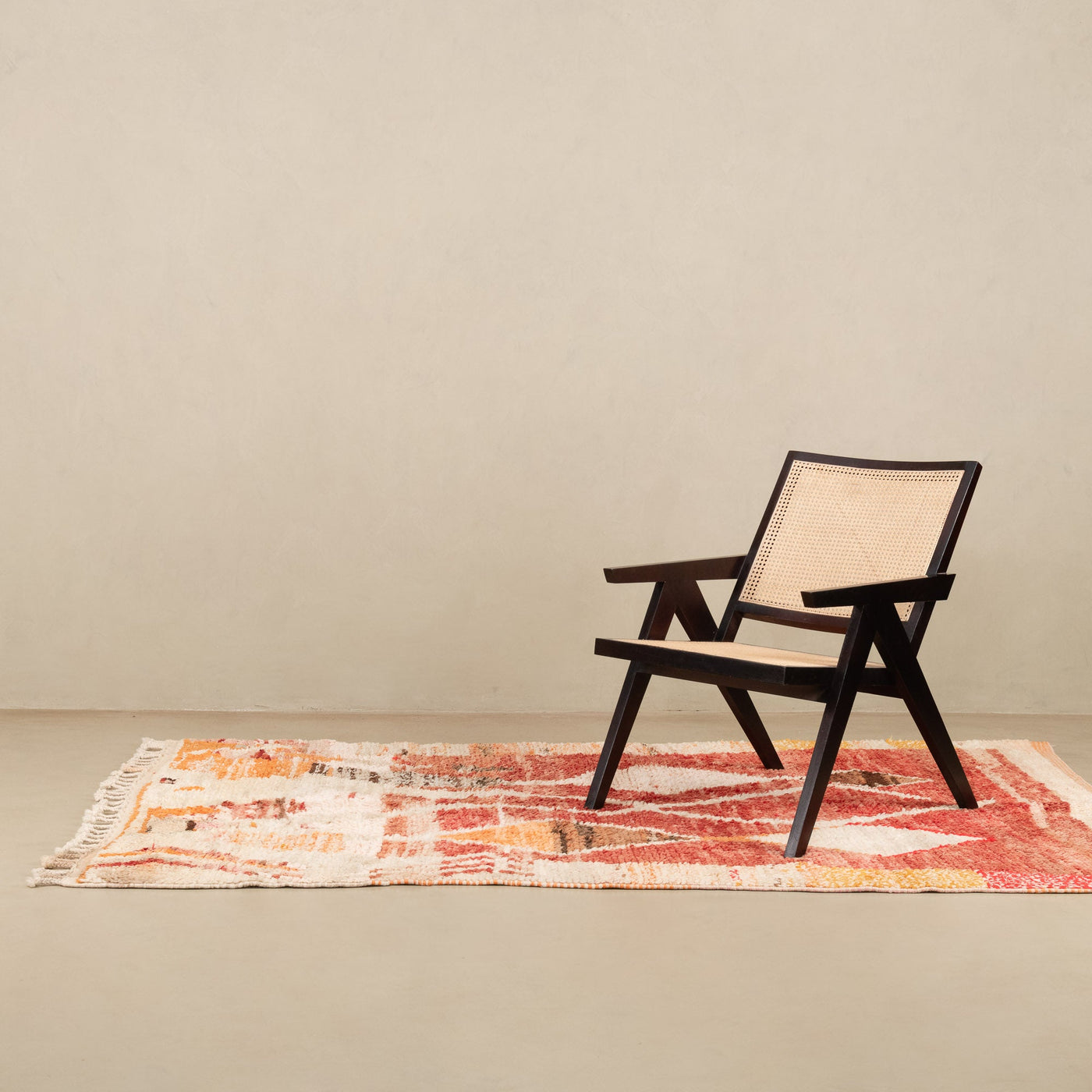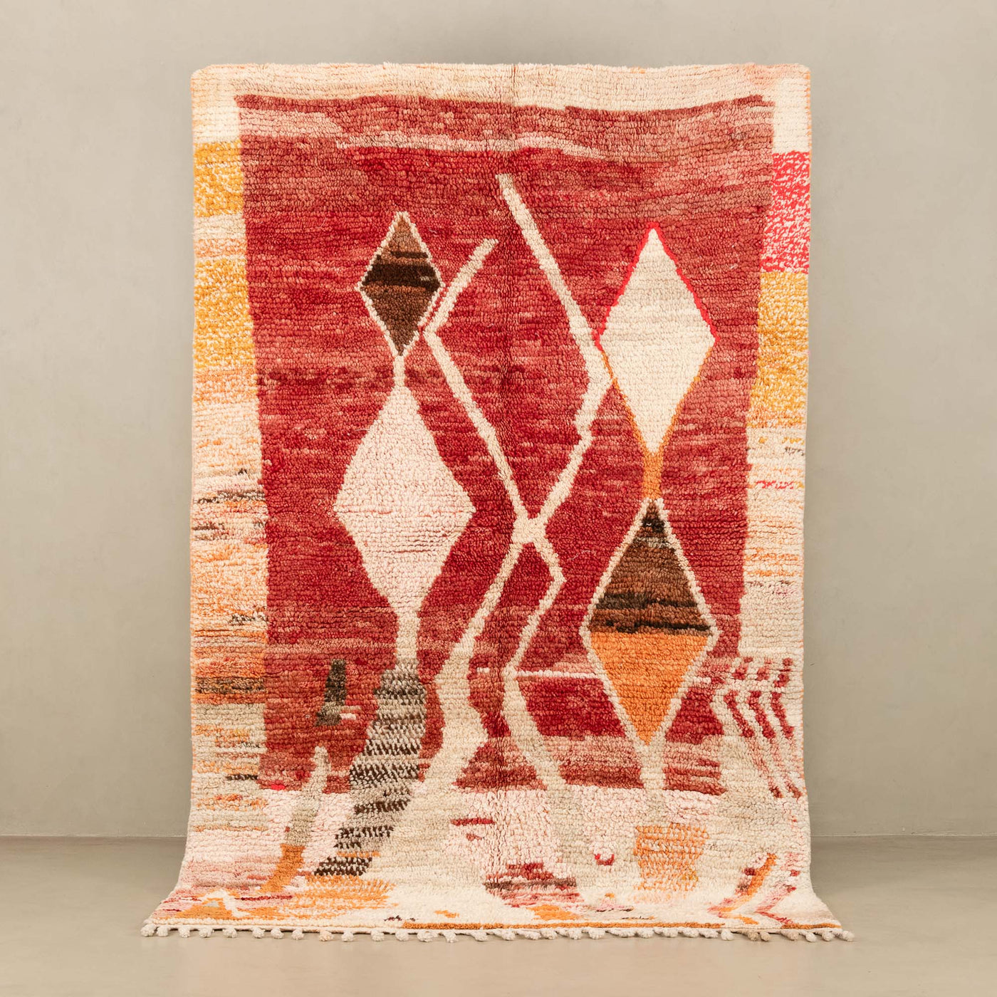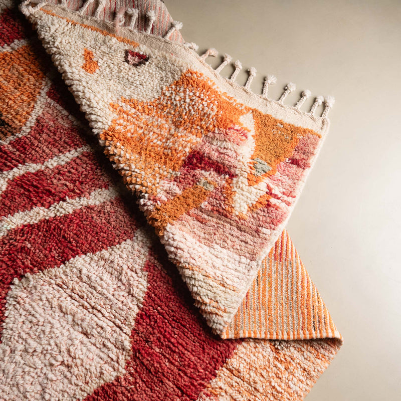 Dayfa is a rare vintage Boujad rug, handwoven by Moroccan artisans using ancestral weaving traditions preserved for generations. Made from 100% natural wool, this piece reflects the artistry and heritage of the Boujad tribe, carrying stories from decades past. Its authenticity and craftsmanship make it not only a beautiful addition to your home but also a collectible heirloom that grows in value over time.