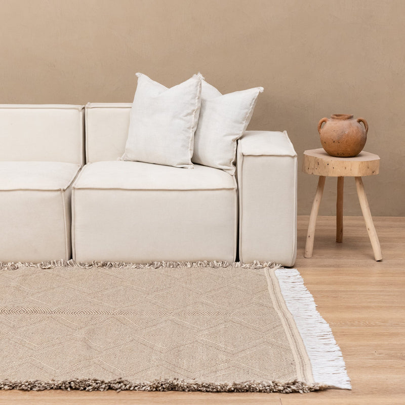 Real Touch: Flatwoven wool surface with artisanal detail