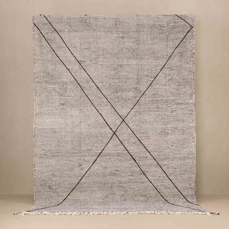The Imi Taznakht Kilim Rug is a striking flatweave designed to merge artisanal tradition with modern versatility. Handwoven from natural wool and goat hair, it showcases the distinctive craftsmanship of Taznakht artistry, celebrated for its durability and lightweight finish.