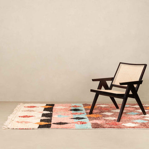 With its balanced size, Karidenna is ideal for living rooms, bedrooms, or dining spaces, where it adds warmth, depth, and authenticity. Purchasing this rug also supports more than 1000 Moroccan craftswomen who sustain and preserve these traditional weaving practices.