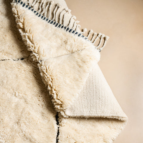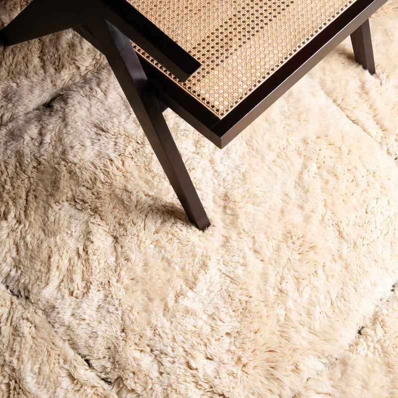 The Magic Diamonds rug is a striking example of the artistry of the Beni Mrirt tribe, celebrated worldwide for their luxurious shag weaving. Handwoven from 100% prestigious New Zealand wool, this rug combines softness, durability, and timeless design.