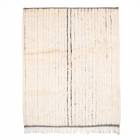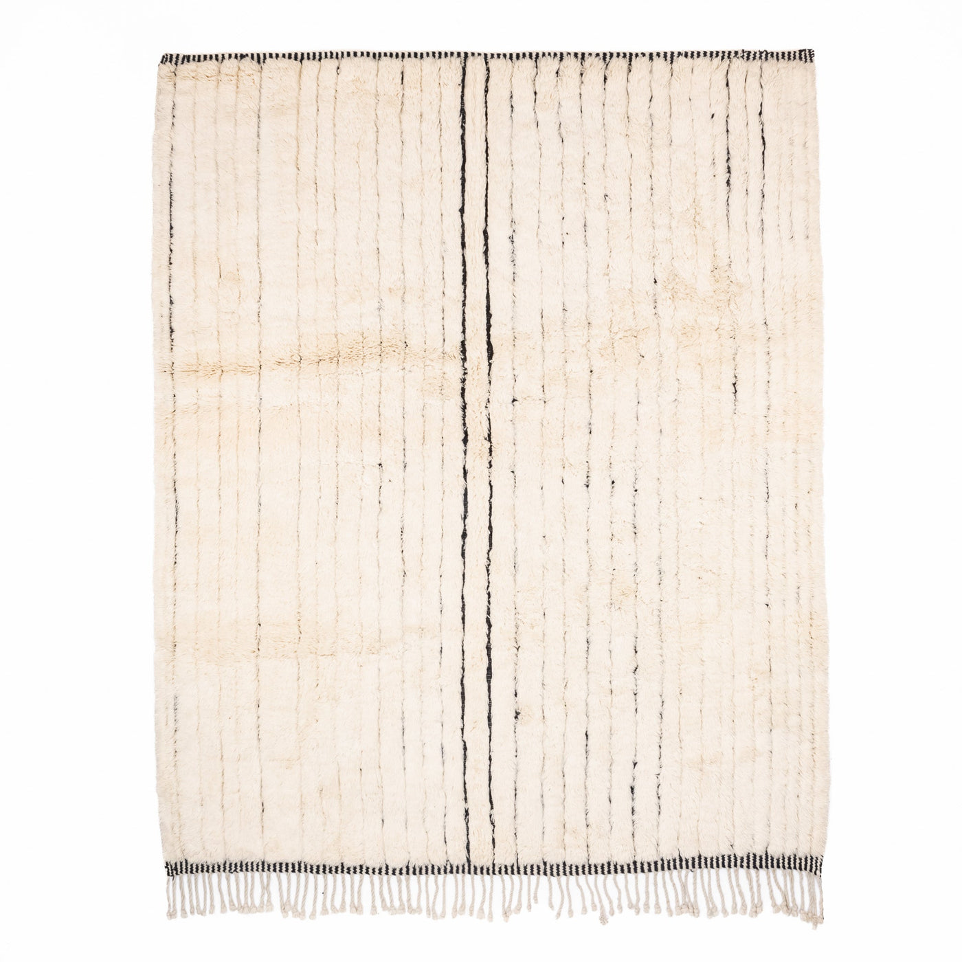 The Melodic Monochrome rug embodies modern elegance with traditional Moroccan craftsmanship. Handwoven by the renowned Beni Mrirt tribe, this piece reflects generations of artisanal skill and cultural heritage.