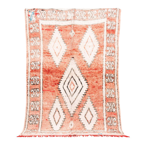 Merouane is a rare vintage Boujad rug, handwoven in Morocco using traditional ancestral techniques. Crafted from 100% natural wool, this rug carries the heritage and artistry of the Boujad tribe, known for their richly textured and distinctive weavings. Woven decades ago and preserved with care, Merouane is both a striking design piece and an heirloom-quality rug that increases in value over time.