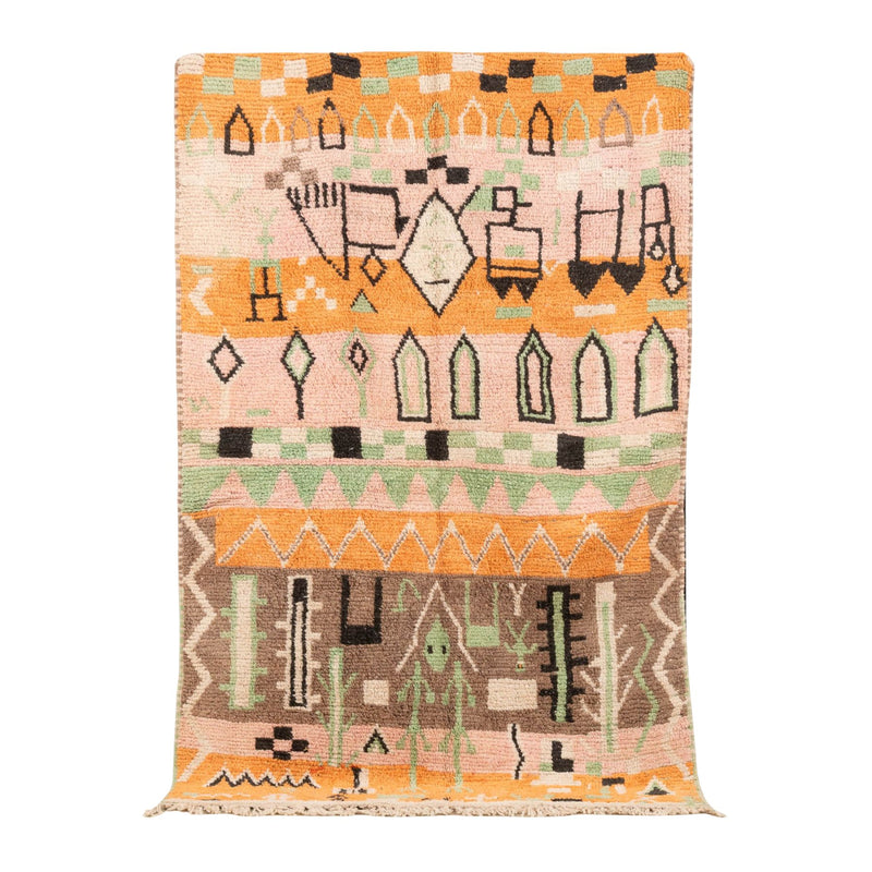 Saossana is a vintage Boujad rug, handwoven decades ago in Morocco with 100% natural wool. Each thread reflects the heritage of the Boujad tribe, where ancestral weaving knowledge has been passed down through generations. This rug is more than décor—it’s a cultural heirloom, growing in value while bringing warmth and authenticity to your home.
