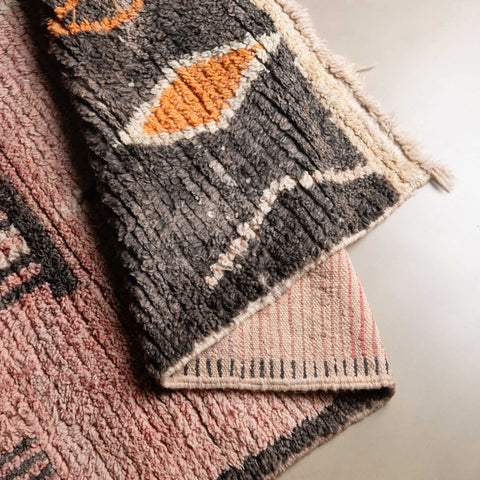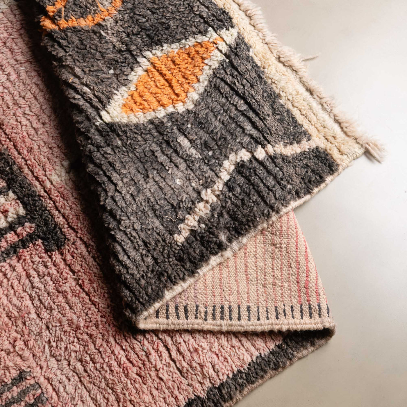 Zayna is a rare vintage Boujad rug, handwoven in Morocco with ancestral weaving knowledge preserved for generations. Made from 100% natural wool, this piece embodies the artistry and heritage of the Boujad tribe. Woven decades ago and carefully passed down, Zayna is more than an accent—it’s an heirloom-quality rug that grows in value over time.