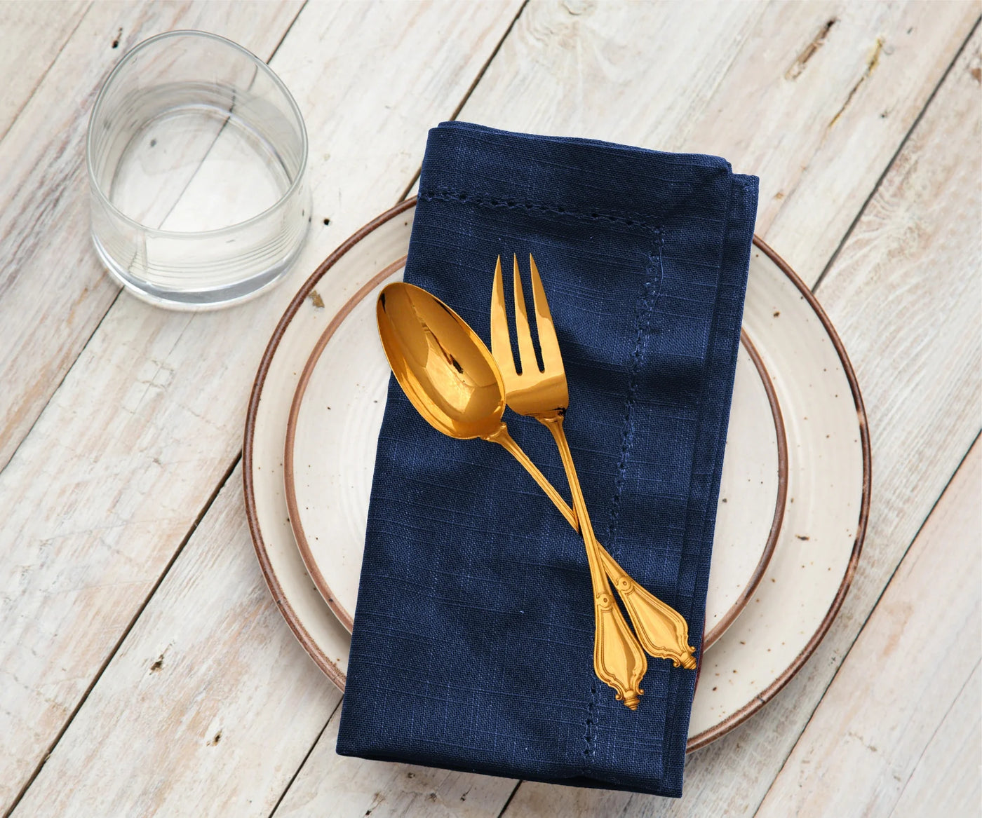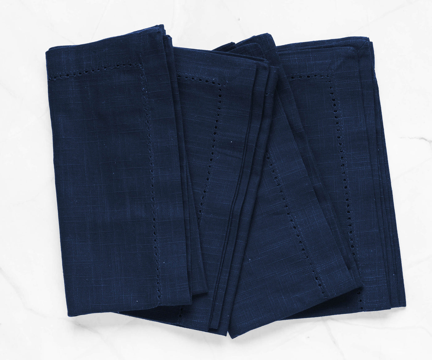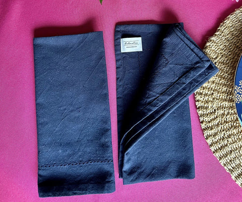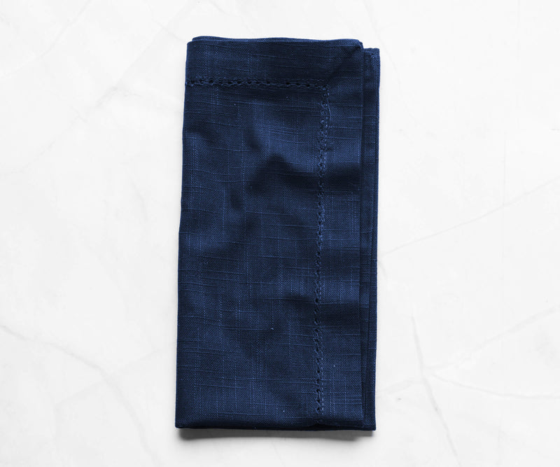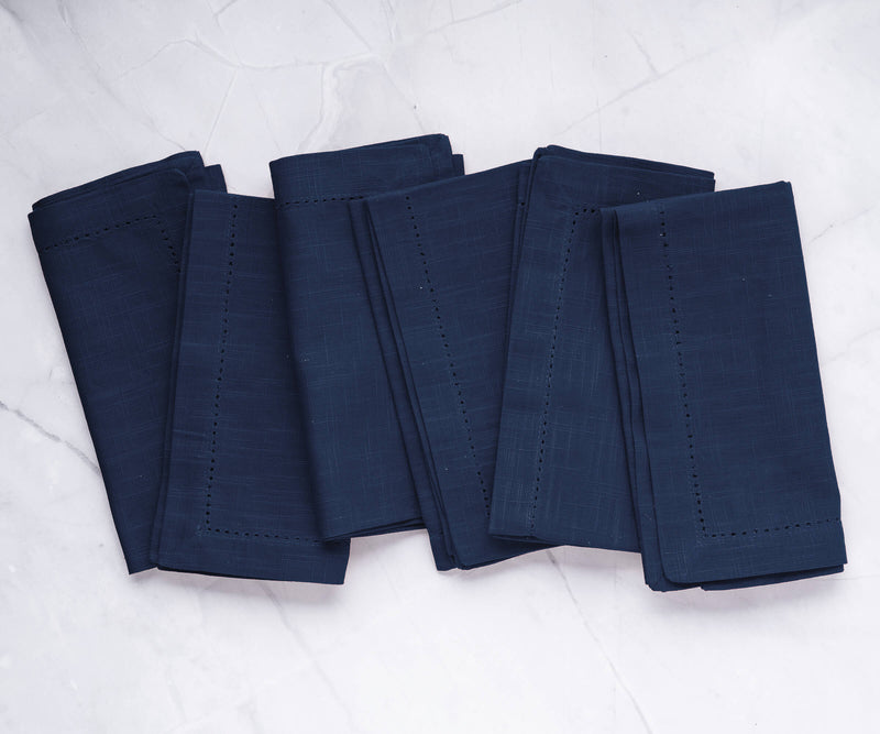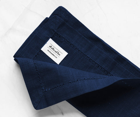 Add timeless charm to your dining table with the Navy Blue Hemstitch Napkins. Made from 100% cotton, these napkins combine durability with a soft, absorbent texture that elevates every meal. The elegant single hemstitch border lends a classic, refined finish, making them versatile enough for everyday dining and sophisticated gatherings alike.