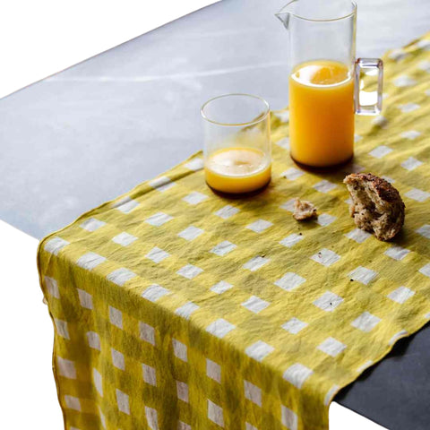 Add a bold and painterly touch to your table with the Yellow Cross Hatch Linen Runner. Designed in bright yellow with expressive strokes, this runner creates a vibrant foundation for everyday meals or celebratory gatherings. Its contemporary style brings both warmth and energy to your dining space.