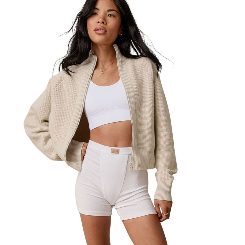 Move effortlessly from pilates to lattes in the Cottonsilk™ Bomber Zip Up, your elevated throw-on-and-go layer. Crafted from our signature Cottonsilk™ knit, it pairs the breathability of cotton with a hint of silk for a naturally soft, flexible drape. Designed with an oversized silhouette, it hangs with an intentional relaxed shape that looks just as polished street-side as it does post-workout.