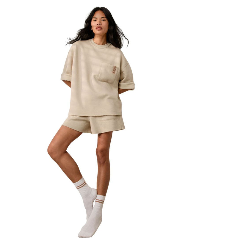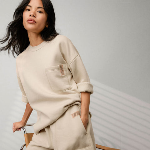 Crafted with a relaxed drop shoulder and raw edge detailing, it delivers that effortless, slightly undone vibe you love. The cropped 3/4 sleeves roll to reveal the contrasting interior, while the elongated length offers added styling versatility. Finished with a single chest pocket and our iconic branded tag, it’s the ultimate off-duty piece with substance and style. Pair it with the Silksweats™ Midweight Reversible Short for a coordinated set that’s effortlessly viral-worthy.