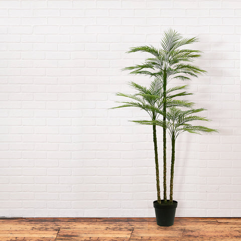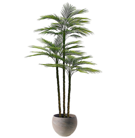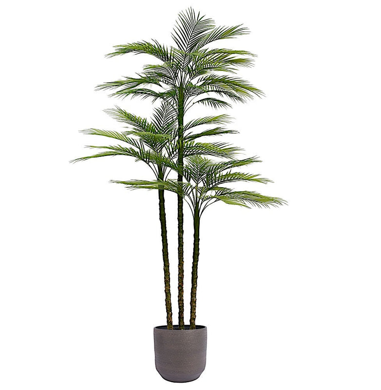 Bring tropical charm indoors with our 84" Artificial Palm Tree by CG Hunter, set in a sleek black 9.5" grower pot. Designed with meticulous attention to detail, this lifelike palm showcases lush, sweeping fronds and textured stems that capture the elegance of real palms. Its tall, airy profile instantly transforms any space into a serene escape, evoking the tranquility of coastal breezes.