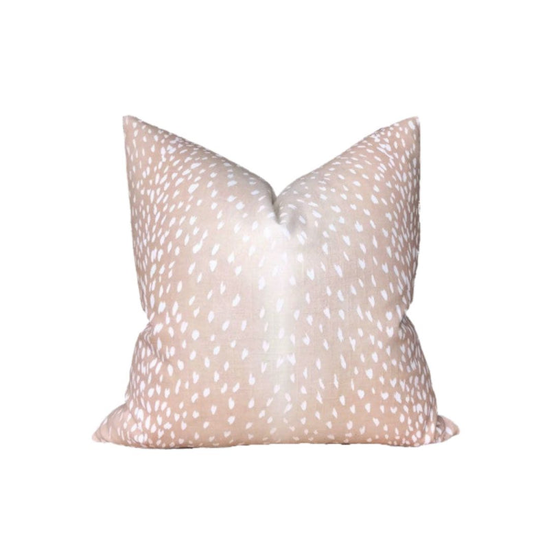 Introduce a playful yet elegant touch to your home with the Antelope Pillow Cover in Pink. Featuring a beautiful antelope print on the front in soft, blush pink tones, this pillow cover adds a refined, whimsical element to any room. The back is crafted from high-quality ivory linen, providing a clean contrast to the vibrant print.