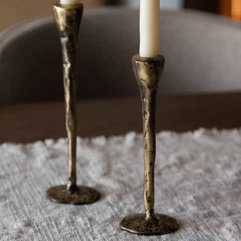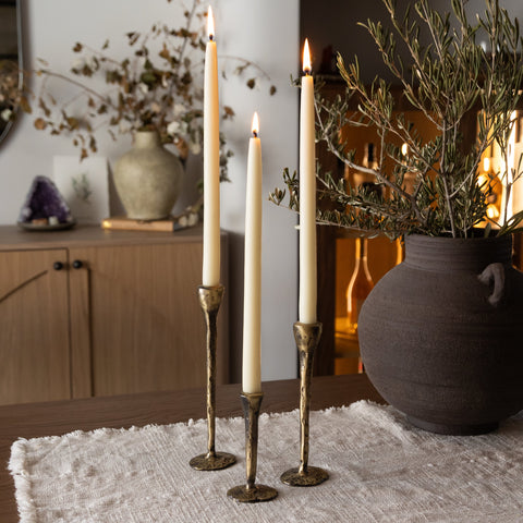 Elevate your space with this set of three hand-forged brass candlesticks, thoughtfully crafted in northern Greece.