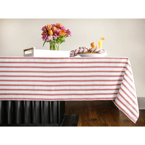 Capri Ticking Stripe Tablecloth - Red & White Capri Stripe / 60 x 90 Inch