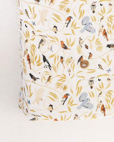 Bring a touch of the outdoors into your nursery with the For the Birds Crib Sheet. Featuring hand-drawn illustrations of beloved North American birds—like cardinals, robins, bluejays, finches, warblers, doves, and magpies—this cheerful print inspires curiosity and adds natural beauty to your baby’s sleep space.