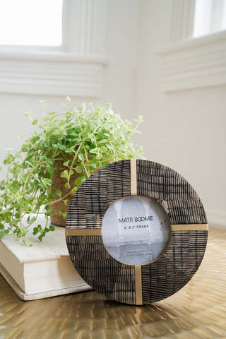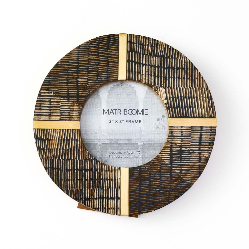 Inspired by the timeless elegance of Kerala’s traditional architecture, the Kerala 3×3 Picture Frame brings a refined touch of craftsmanship to your home. This distinctive round frame is handcrafted from natural horn and accented with warm brass inlay, creating a captivating blend of texture and tone. Each piece celebrates the organic beauty and unique pattern variations of the horn, ensuring that no two frames are exactly alike.