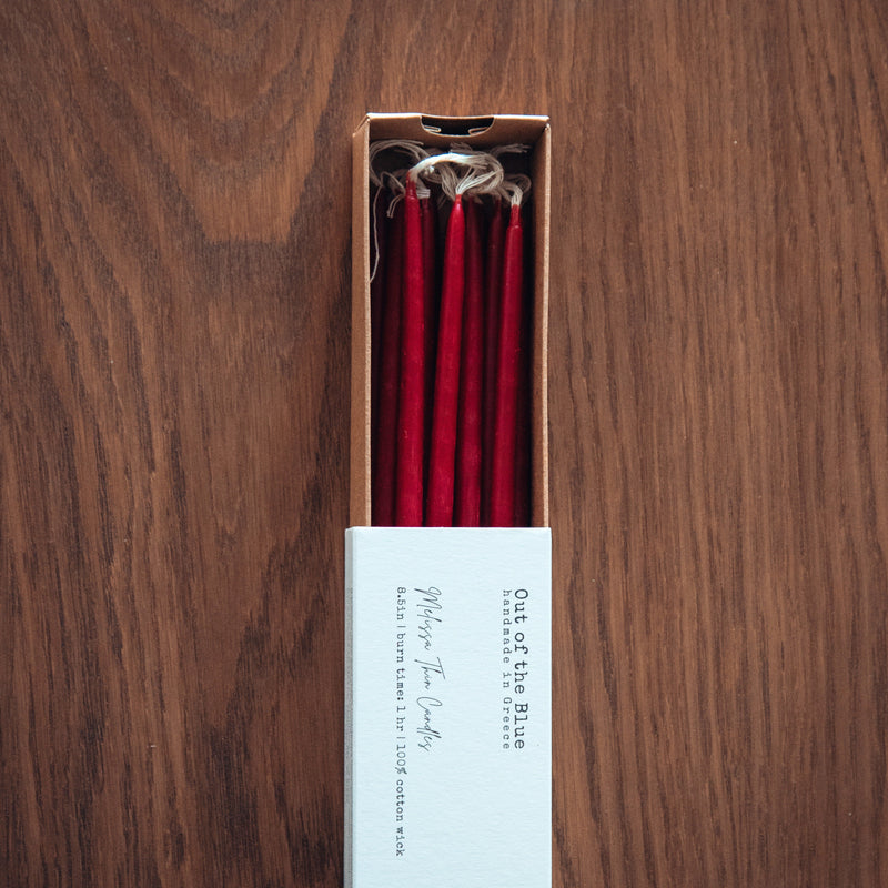 *Our Natural and Ivory Melissa Thin Beeswax Candles are made from 100% pure beeswax. Our Black & Burgundy Melissa Thin Beeswax Candles are made from a blend of pure beeswax as well as the highest quality paraffin wax.